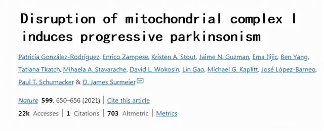 为了探究线粒体-黑质-帕金森之间的关系,美国西北大学的研究团队进行了研究,最新结果发表在《Nature》上,论文标题为:“Disruption of mitochondrial complex I induces progressive parkinsonism"。